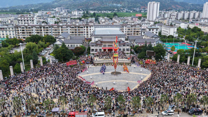 在镜头下,杨立乾拍摄数万人汇聚广场,围绕火把形成壮观人潮。传统祭火仪式庄重举行,象征驱邪祈福的火把被点燃,火焰腾空而起,映红人们的笑脸。特色歌舞表演穿插其中,身着民族服饰的舞者穿梭人群,用灵动舞姿传递节日喜悦,现场欢声笑语与火焰噼啪声交织,成为夏日里最热烈的图景。当夜幕降临,城市夜景与火把节烟火交融。灯火璀璨的楼宇间,火把的光芒如星芒扩散,照亮山峦与街巷。从高空俯瞰,城市因这场民俗狂欢焕发出别样生机,传统与现代在此刻完美融合,既展现了云南深厚的民族文化底蕴,也彰显着城市包容多元的活力。