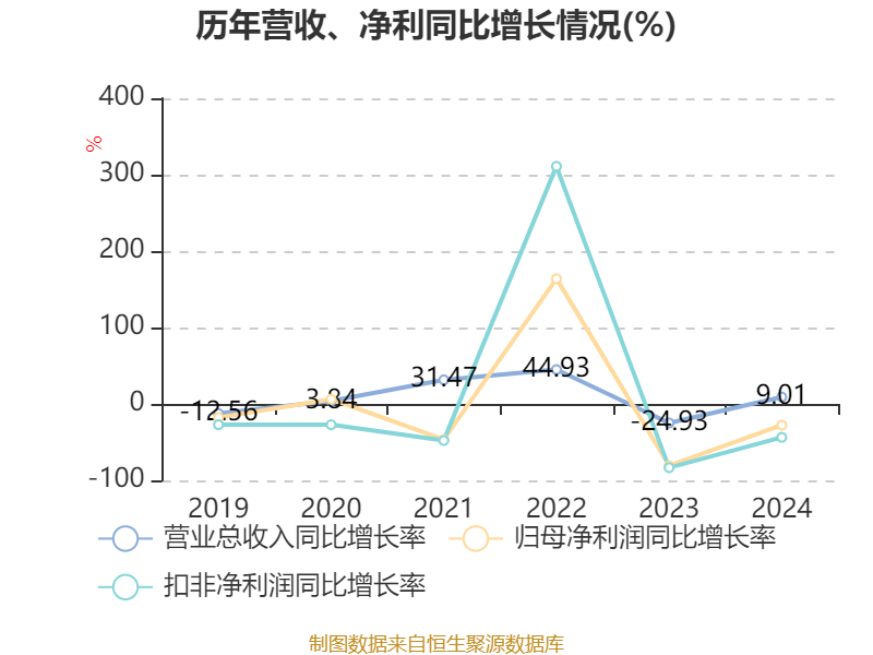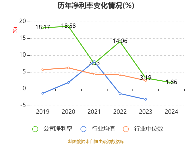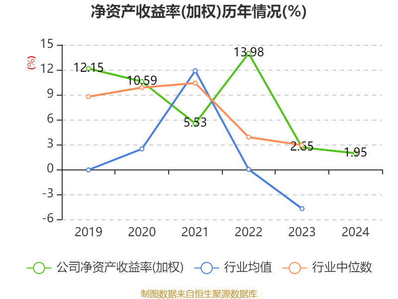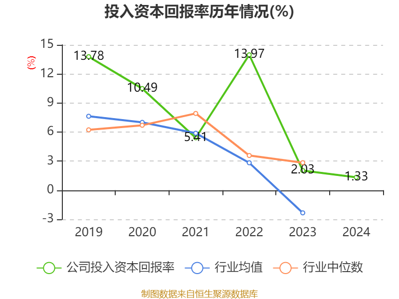 数据显示,2024年公司加权平均净资产收益率为1.95%,较上年同期下降0.7个百分点。公司2024年投入资本回报率为1.33%,较上年同期下降0.7个百分点。