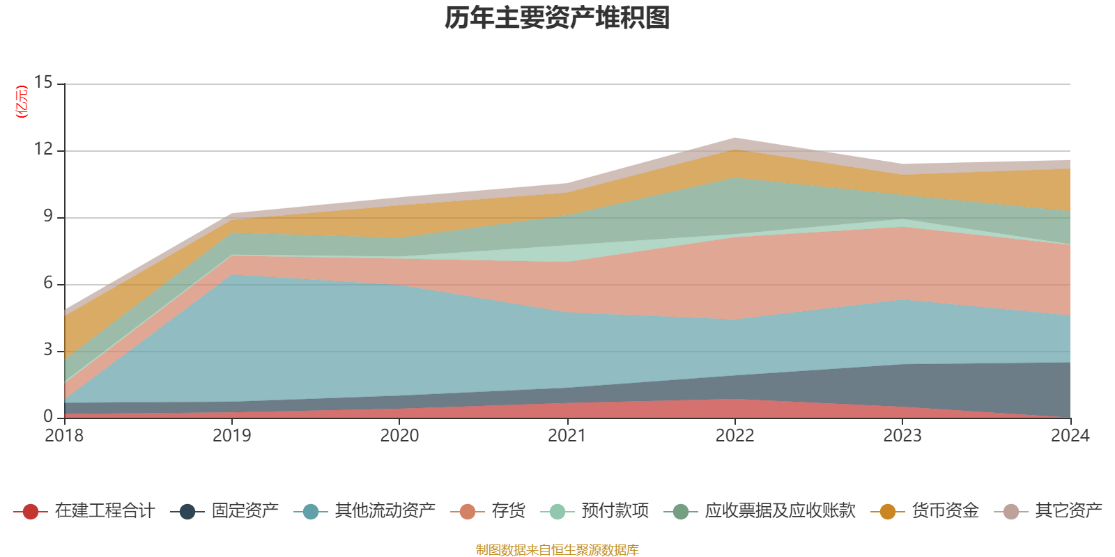 资产重大变化方面,截至2024年末,公司货币资金较上年末增加109.61%,占公司总资产比重上升8.5个百分点;其他流动资产较上年末减少27.39%,占公司总资产比重下降7.27个百分点;固定资产较上年末增加30.38%,占公司总资产比重上升4.74个百分点;在建工程合计较上年末减少97.95%,占公司总资产比重下降4.27个百分点。