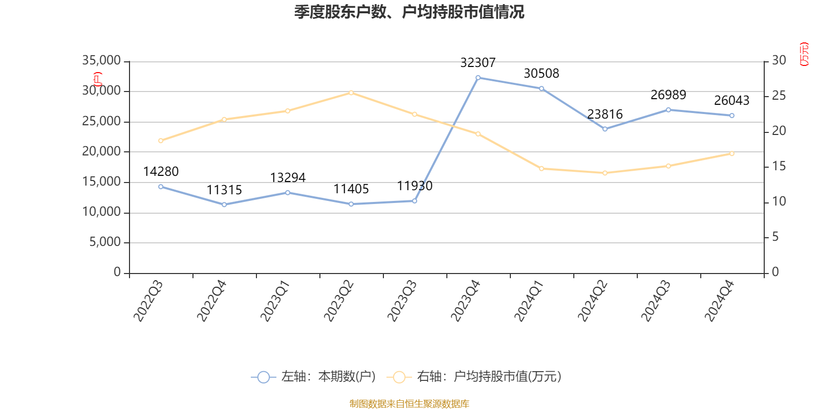 年报显示,2024年末的公司十大流通股东中,新进股东为大成中证360互联网+大数据100指数型证券投资基金、邬益菊、中国国际金融股份有限公司、孙元涛,取代了三季度末的BARCLAYS BANK PLC、高盛公司有限责任公司、J.P.Morgan Securities PLC-自有资金、中国银河证券股份有限公司客户信用交易担保证券账户。在具体持股比例上,MORGAN STANLEY & CO. INTERNATIONAL PLC.持股有所下降。