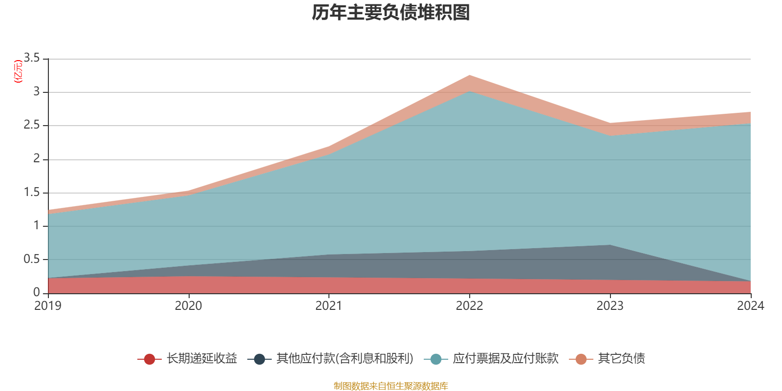 负债重大变化方面,截至2024年末,公司应付票据及应付账款较上年末增加44.49%,占公司总资产比重上升6.05个百分点;其他应付款(含利息和股利)较上年末减少98.61%,占公司总资产比重下降4.53个百分点;租赁负债较上年末减少69.12%,占公司总资产比重下降0.23个百分点;长期递延收益较上年末减少10.51%,占公司总资产比重下降0.21个百分点。