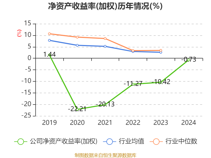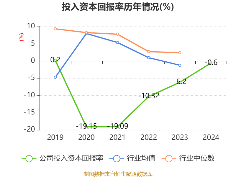 数据显示,2024年公司加权平均净资产收益率为-0.73%,较上年同期上升9.69个百分点。公司2024年投入资本回报率为-0.6%,较上年同期上升5.6个百分点。