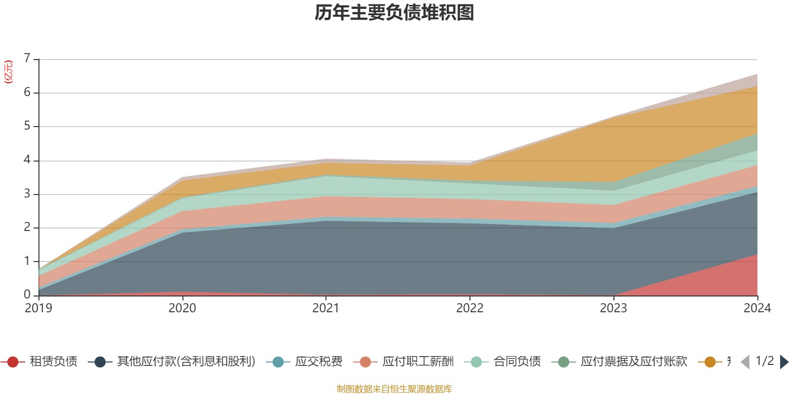 负债重大变化方面,截至2024年末,公司租赁负债较上年末增加17943.91%,占公司总资产比重上升5.86个百分点;短期借款较上年末减少26.33%,占公司总资产比重下降2.95个百分点;其他应付款(含利息和股利)较上年末减少6.87%,占公司总资产比重下降1.2个百分点;应付票据及应付账款较上年末增加95.65%,占公司总资产比重上升1.12个百分点。